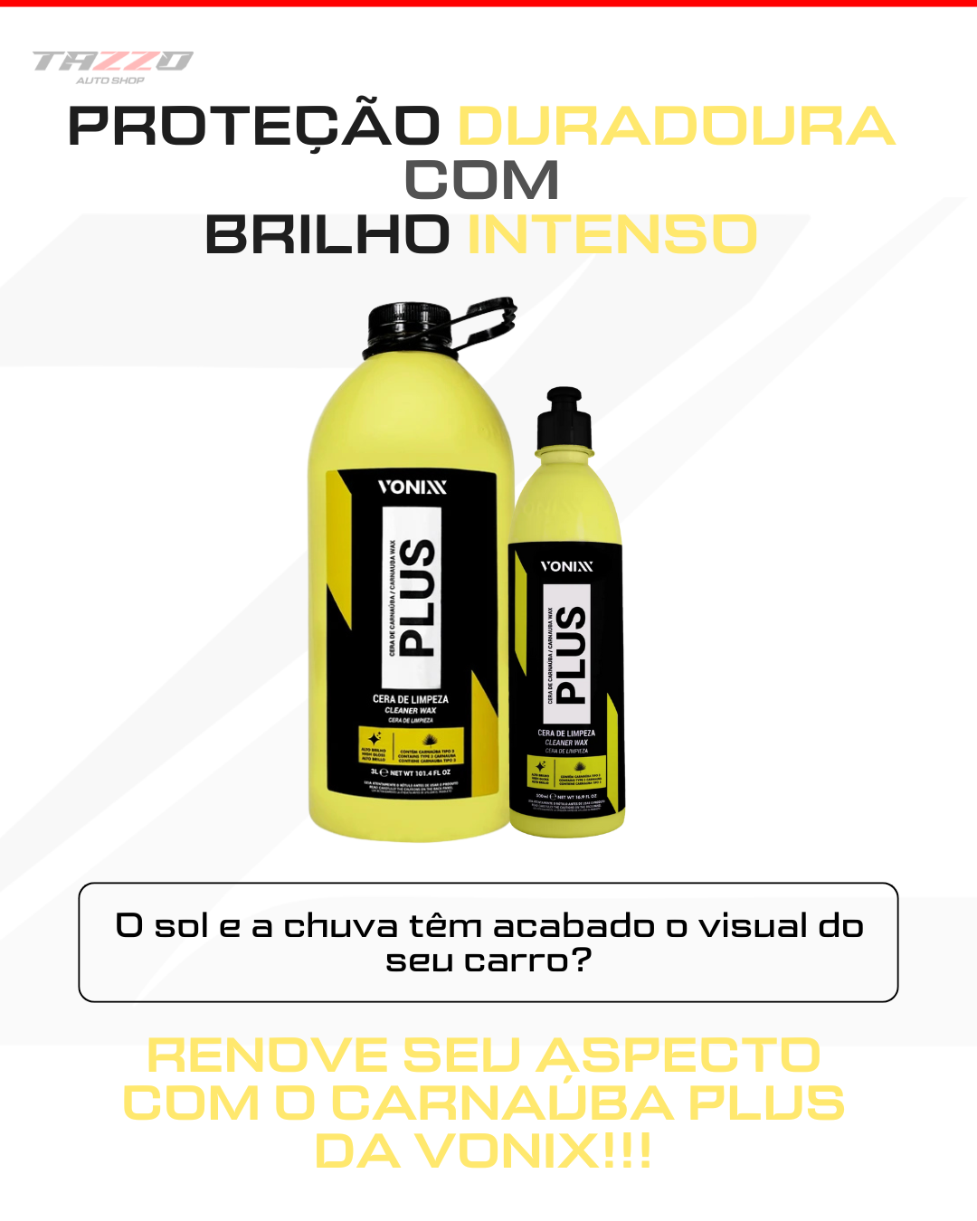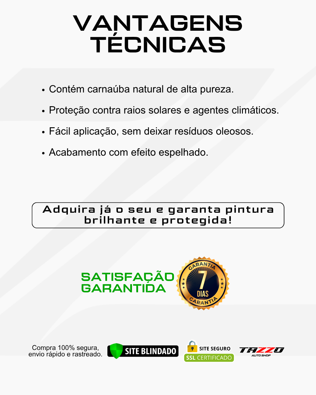 Olá, Nós somos a Tazzo Auto Shop, uma empresa especializada na distribuição de produtos automotivos de alta performance. O nosso propósito é impactar a vida das pessoas de forma positiva, levando informação, segurança, lazer e um novo conceito de cuidar do carro através da distribuição de produtos de alta performance. Nossa organização é composta pelos seguintes valores: Honestidade, Humildade, Comprometimento, respeito e a vontade de querer ir sempre além.