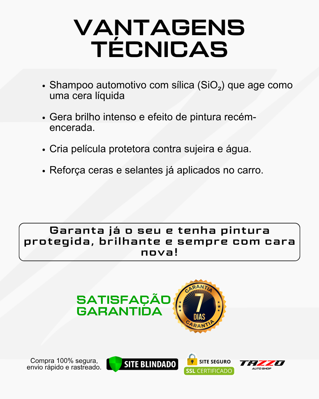 Olá, Nós somos a Tazzo Auto Shop, uma empresa especializada na distribuição de produtos automotivos de alta performance. O nosso propósito é impactar a vida das pessoas de forma positiva, levando informação, segurança, lazer e um novo conceito de cuidar do carro através da distribuição de produtos de alta performance. Nossa organização é composta pelos seguintes valores: Honestidade, Humildade, Comprometimento, respeito e a vontade de querer ir sempre além.