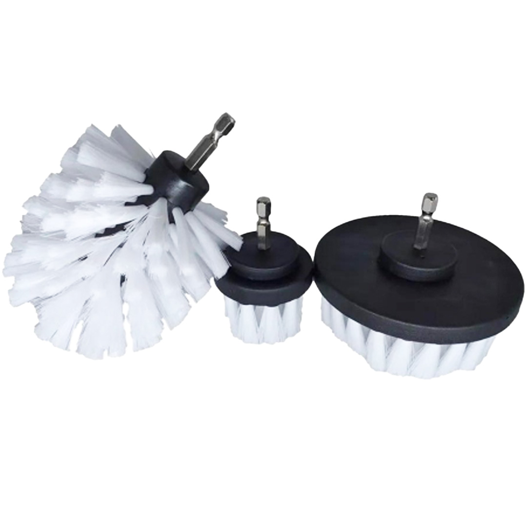- Kit escovas indicado para utilização em Furadeira/Parafusadeira. Sendo uma excelente ferramenta para uso em superfícies que necessitam de esfregação mais leves e uma limpeza sensível. As cerdas destas escovas são macias, desenvolvida para limpeza mais leve em estofados, carpetes, bancos de couro e outros.