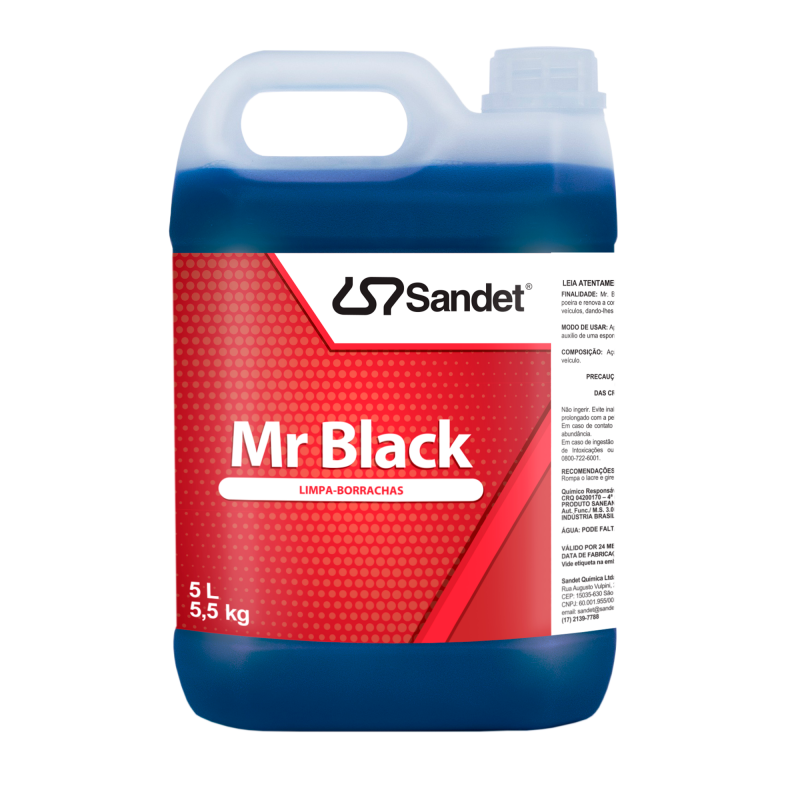 - MR. BLACK deixa uma película brilhante, que protege contra poeira e renova a cor dos pneus, tapetes, painéis e partes emborrachadas de veículos, dando-lhes nova aparência.