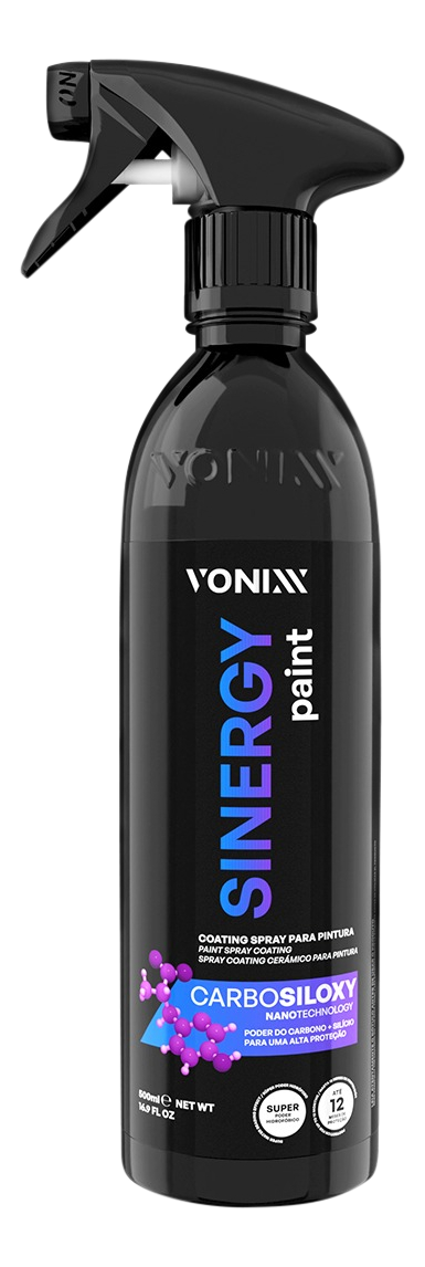 - SINERGY é UM coating spray de fácil aplicação desenvolvido para pintura de automóveis e tem como função proteger a pintura por até 12 meses. O diferencial desse produto é a sua tecnologia exclusiva Vonixx, CARBOSILOXY, onde o elemento químico carbono age em sinergia com o silício e com isso, forma um filme resistente e super hidrofóbico e tem um tempo de cura menor, em média 60 minutos. Além disso, esse produto reduz o atrito, minimizando riscos e promovendo um excelente brilho.